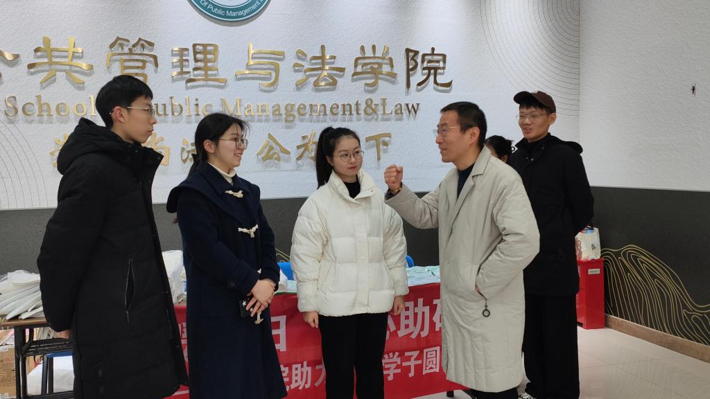 领导老师深入学生之中,为考研学子发放考研礼包,送上了温暖的问候与亲切的祝福。公共管理与法美高梅娱乐城