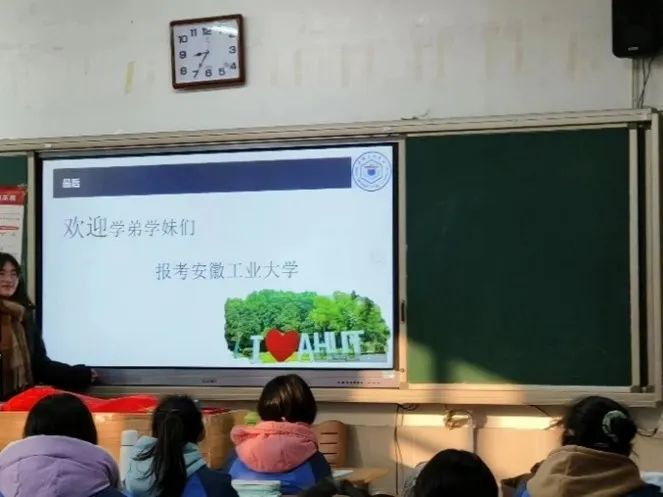 (图为结束后宣讲人欢迎学弟学妹报考安工大)