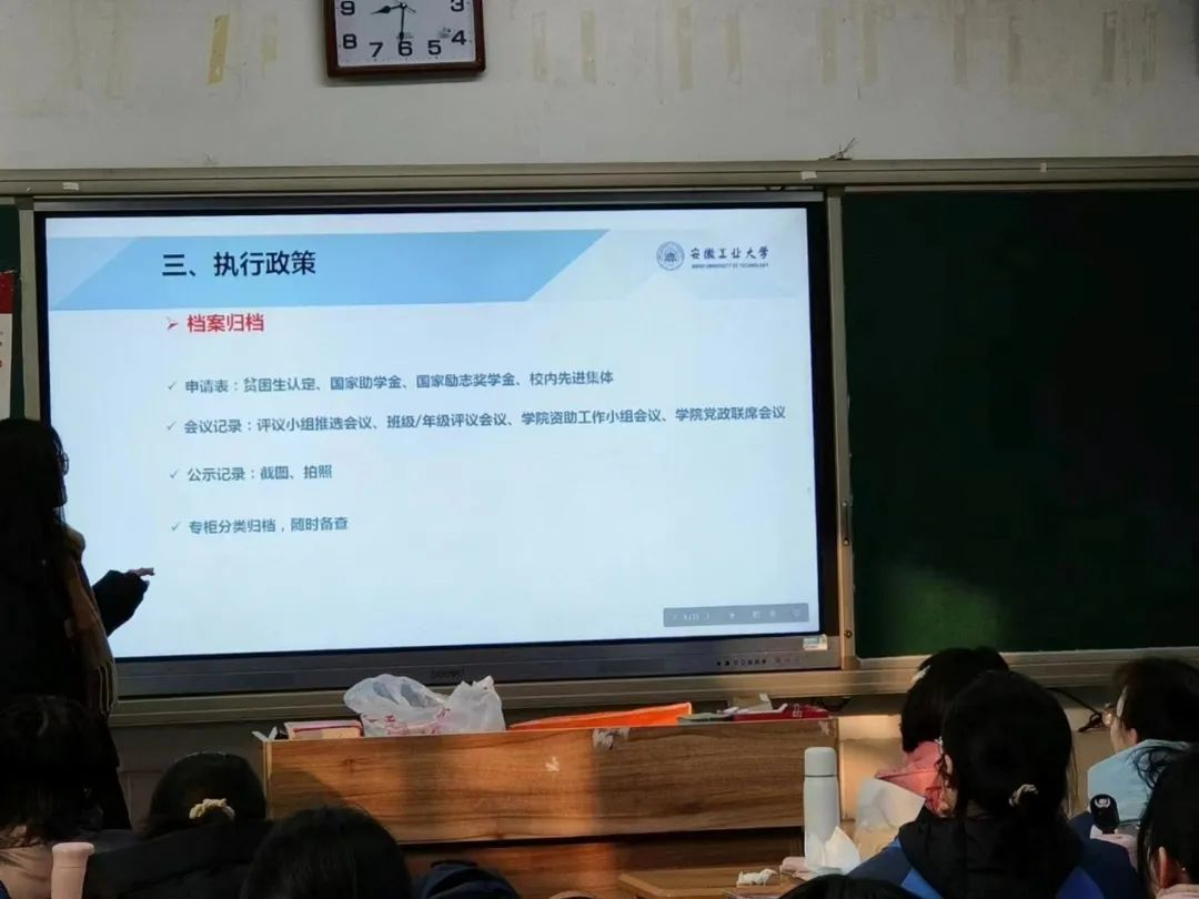 活动开始后,宣讲人先热情地向学弟学妹问好并作自我介绍。接着,围绕资金来源、资助项目、资助对象这三个部分介绍了学生资助政策内容、流程及时间节点。紧接着,有针对性地介绍安徽工业大学的资助政策体系,从国家奖学金、国家励志奖学金、国家助学金、国家助学贷款、服兵役高等美高梅娱乐城
