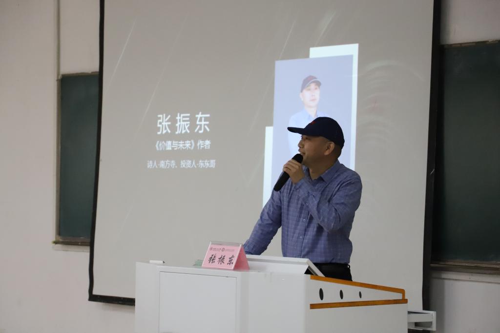 (图为张振东校友为学生们宣讲诗歌与投资艺术)