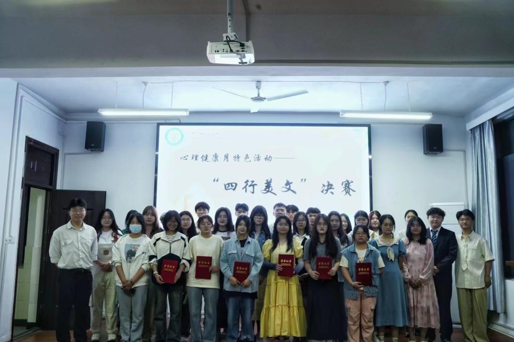 于佳山校区公法楼学术报告厅301开展大学生心理健康宣传月系列活动之“四行美文”,本次活动旨在通过文字抒发情感,提升同学们的语言表达和心理调适能力,扩大对心理健康教育与心理咨询工作的宣传,在校园中形成良好的大学生心理健康教育氛围。公法美高梅娱乐城