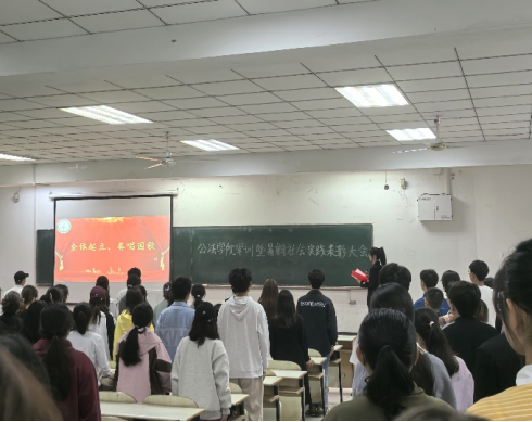 大会在全院师生嘹亮的国歌声中开始,全体师生起立行注目礼。