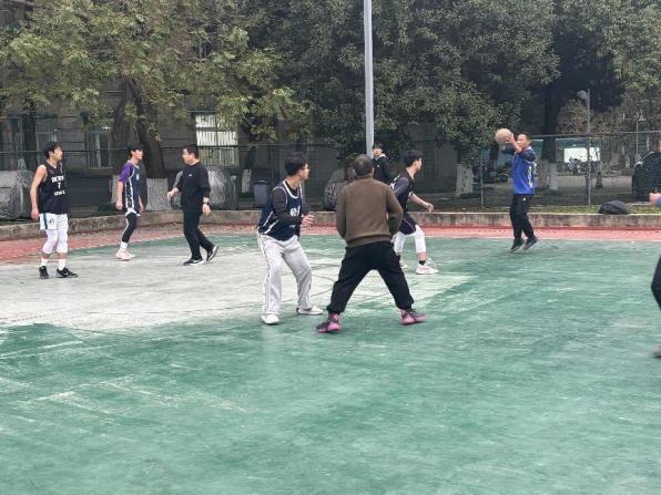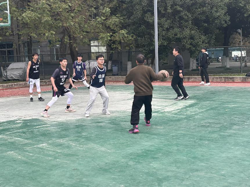 本次友谊赛双方分别为教师团队和行政管理专业的同学。开场后,学生队活力四射,凭借敏捷的身手与充沛的体能,发起一轮轮快攻,抢板、传球、上篮一气呵成。教师队也毫不示弱,经验老到的他们沉着布局,凭借精准的投篮与默契的挡拆战术,紧咬比分。比赛高潮迭起,学生队一记记精彩的灌篮点燃了全场的激情,欢呼声此起彼伏;教师队抓住时机,用稳健的三分远投彰显实力,引得观众阵阵惊叹。场上球员们全力拼搏,汗水湿透了衣衫;场下观众呐喊助威声浪一波高过一波,为师生们加油鼓劲。