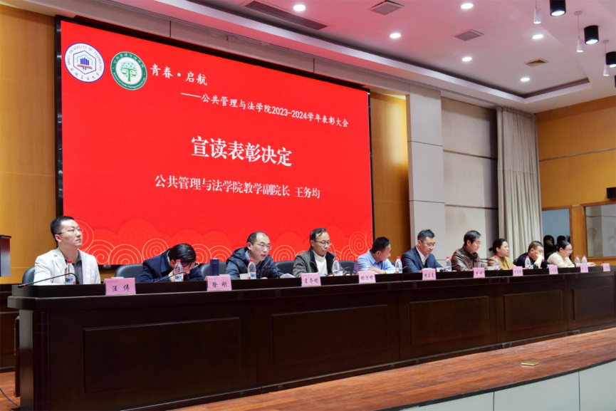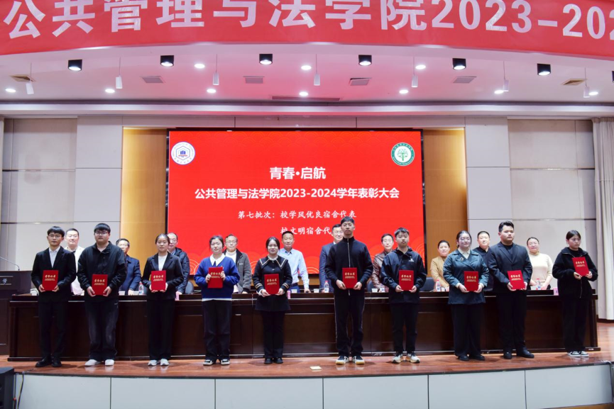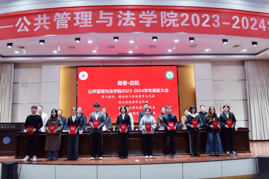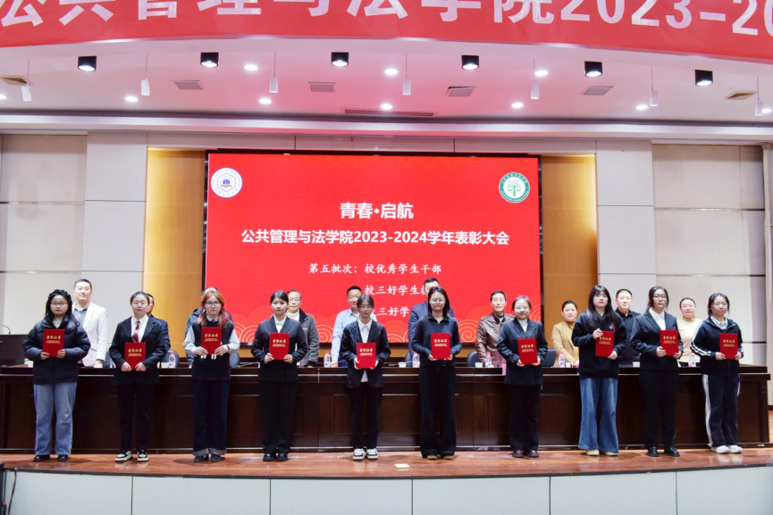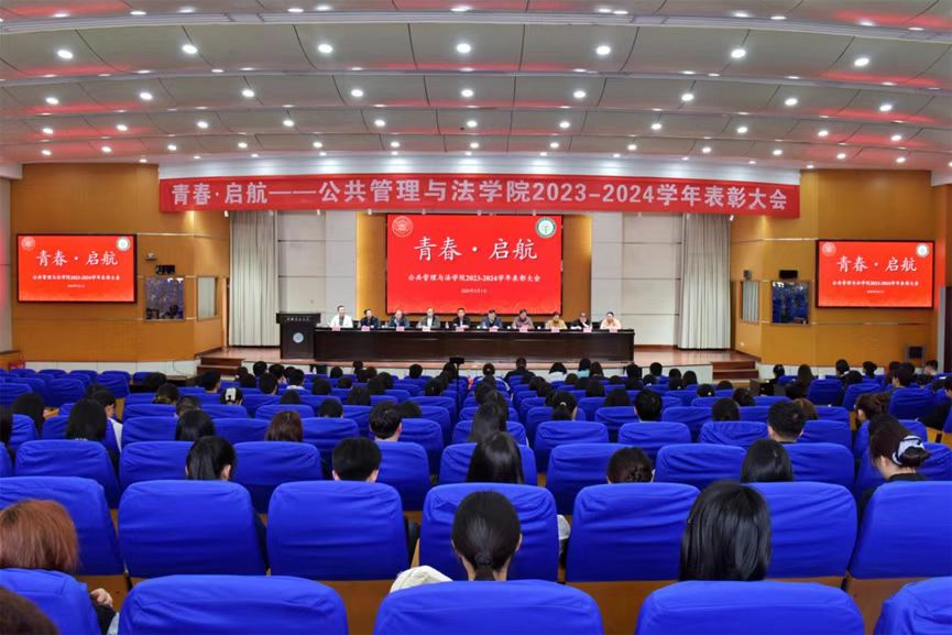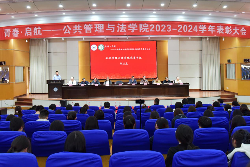 于佳山校区学术会议中心四楼报告厅隆重举行“青春·启航”——2023-2024学年年度表彰大会。公共管理与法美高梅娱乐城
