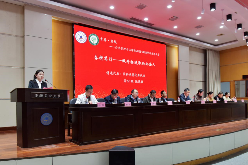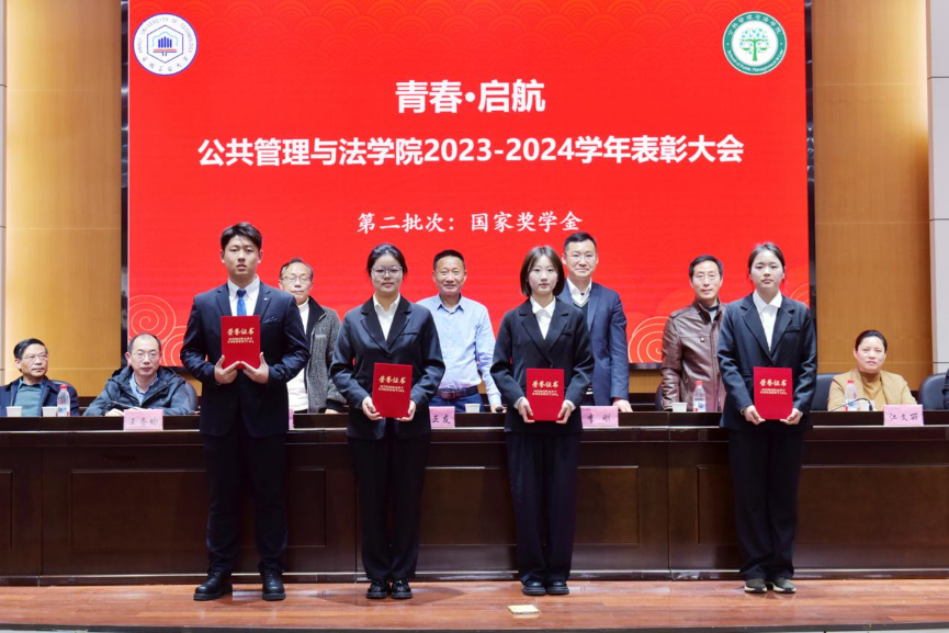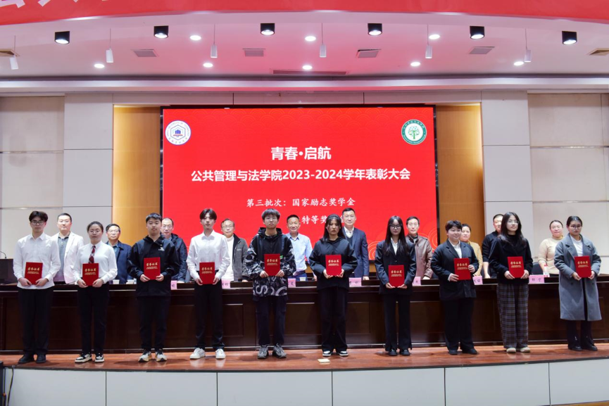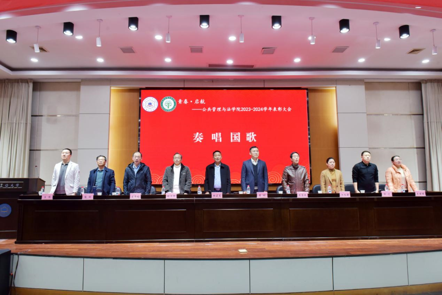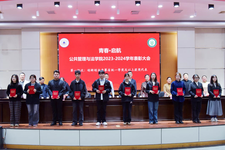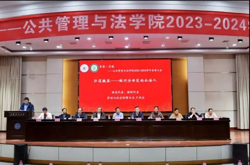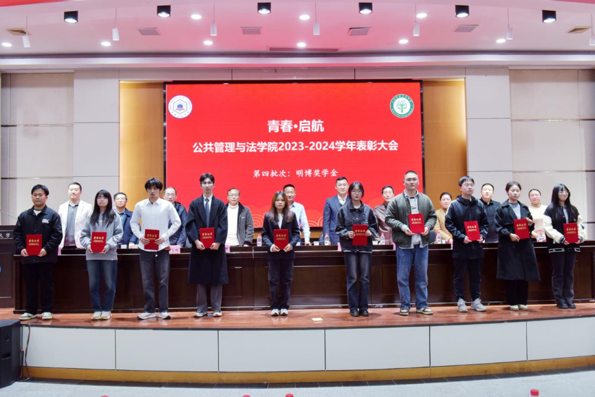 于佳山校区学术会议中心四楼报告厅隆重举行“青春·启航”——2023-2024学年年度表彰大会。公共管理与法美高梅娱乐城