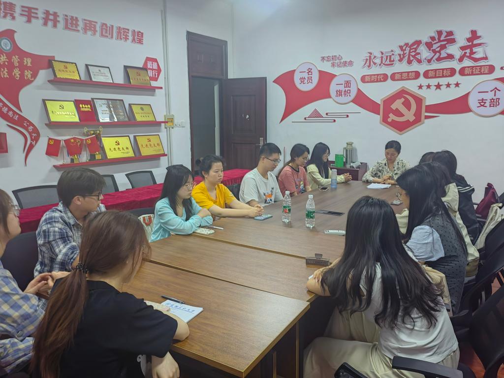 于2025年5月7日晚召开了2023级本科发展对象座谈交流会,会议由公共事业管理本科生党支部书记、2023级辅导员朱玲主持,2023级全体发展对象参加会议。