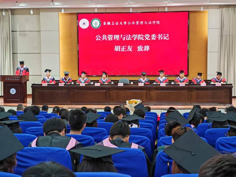 向同学们圆满完成学业表示祝贺,对他们在大学期间取得的成绩给予高度肯定。他勉励毕业生永葆初心、做逐梦的坚守者,锤炼初心、做清醒的思考者,砺初心、做笃行的奋斗者,始终保持对知识的渴望,以滚烫之心去探索、创造、奉献,深入践行新时代公共管理与法学高层次人才所应具有的奋进心、求知欲、创新力,做全面推进国家治理能力现代化的优秀探索者实践者,在全面推进中国式现代化新征程上大有作为、大展宏图!他希望毕业生继续关心支持母校的建设和发展、继续关心学弟学妹的成长成才。