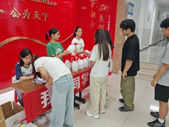 为大家准备的喷壶与消毒水,既便于日常使用,又能有效帮助同学们对寝室和学习环境进行清洁消毒。发放过程中,志愿者们认真维持秩序,细心叮嘱领取的同学:“要定期喷洒消毒,保持空气流通”“做好防护不仅是保护自己,也是守护身边的人”。一句句贴心的话语,让同学们在领取物资的同时,也感受到来自美高梅娱乐城