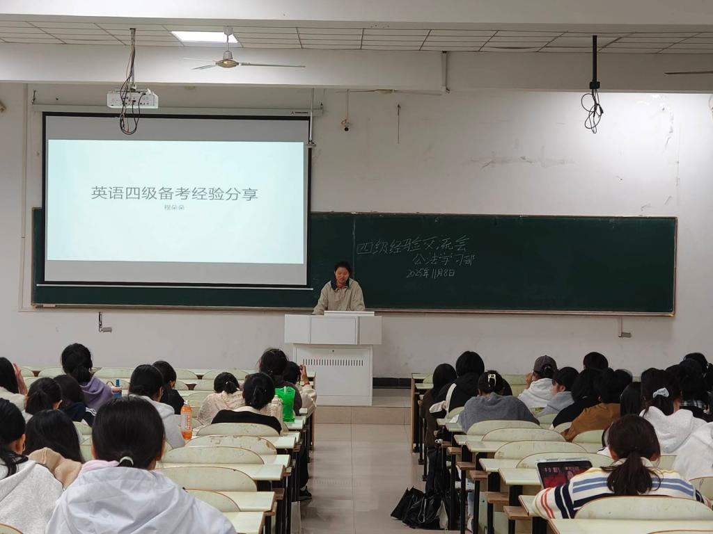 学习部于11月8日晚在第三教学楼南203教室开展四六级经验分享活动。此次活动特别邀请了程朵朵、梅啸云、江晨曦、宋子怡、陈志祥和高钰多位优秀公法学子来分享自己的备考经验和应试技巧。