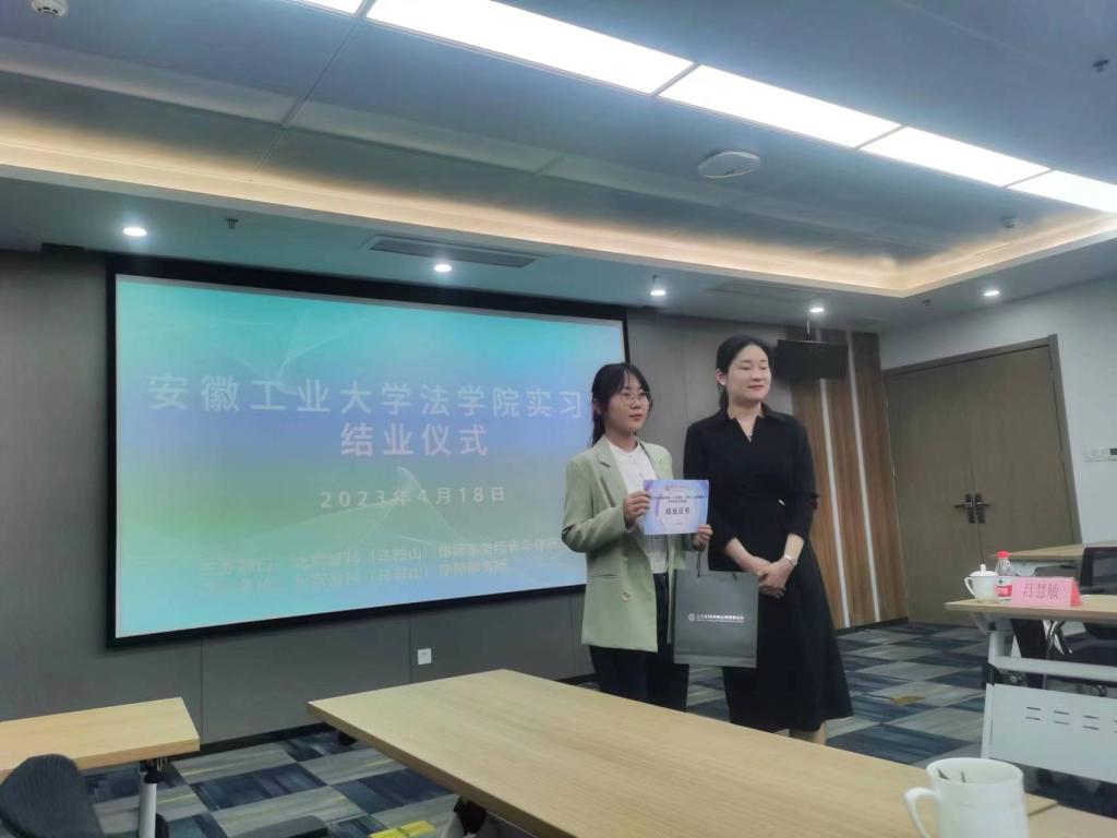 法学系法学专业本科毕业班9名同学顺利结束了在北京盈科(马鞍山)律师事务所为期一个月的毕业实习。盈科(马鞍山)律师事务所为此专门组织了一次结业仪式,并为学生们颁发了结业证书与结业礼。北京盈科(马鞍山)律师事务所管委会副主任、行业导师姜海平主持人结业仪式。盈科所党支部书记魏广金等领导及指导老师、美高梅娱乐城免费畅玩趣味官方版