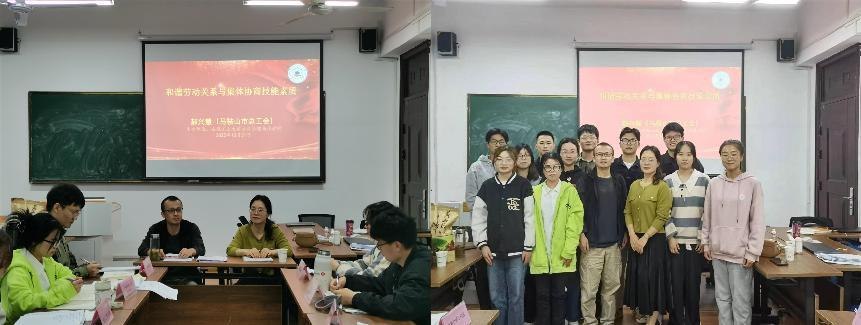 同时,依据现阶段劳动关系发展的复杂性、多样性,她为同学们重点介绍了人社、工会等部门关于新就业形态劳动者劳动保障权益的相关政策、新做法及未来的重难点。最后,她结合自身工作经验,分享和解读了集体协商过程中应从对政策法规、劳动人事及团队沟通合作等全面学习中发展,从而达到职工方与企业行政方的发展共赢。在互动环节,在场的集体协商国赛队员积极学习,就新业态职工权益维护的开展了深入交流。