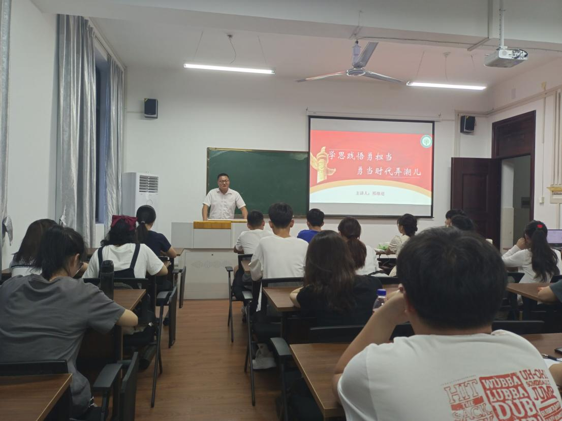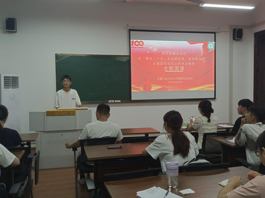 团委在公法楼205开展学习郑栅洁书记在“喜迎二十大,永远跟党走,奋进新征程”主题团日活动中讲话精神主题团课。团委书记邢维迢老师主讲,团委学生会全体成员、各班班长团支书及学生代表参与。