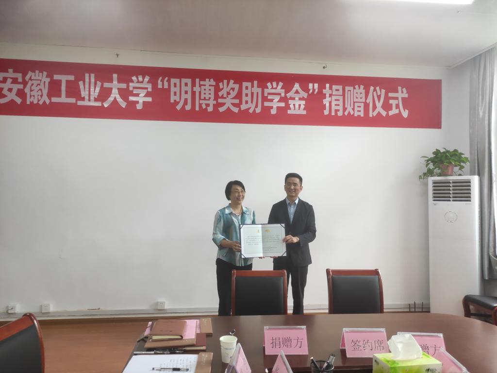 5月30日下午,安徽工业大学“明博奖助学金”捐赠仪式在美高梅娱乐城