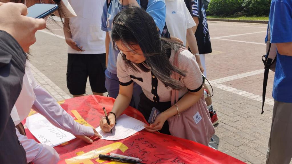 承办,两校区两千余名学生共同参与。通过前期发布第二课堂活动,学生们踊跃报名,积极参与本次活动,在红色条幅上留下自己的签名。公法美高梅娱乐城