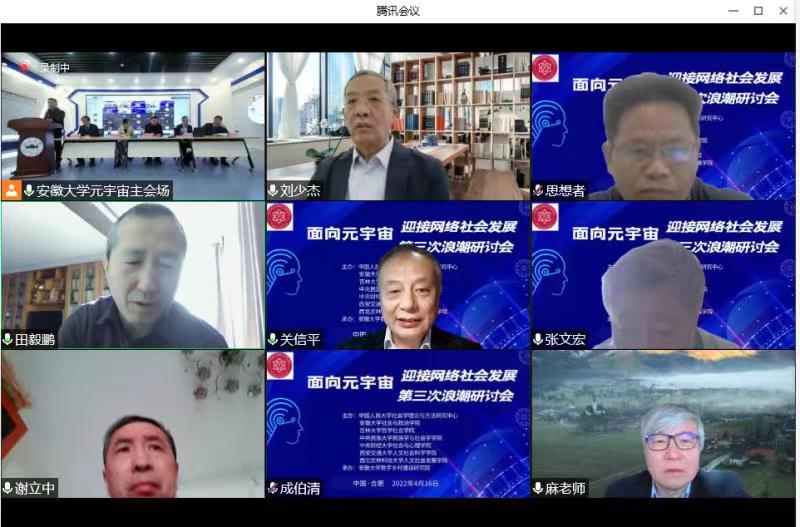 共同主办,安徽大学数字乡村建设研究院具体承办的“面向元宇宙:迎接网络社会发展的第三次浪潮研讨会”以线上线下相结合的形式,在安徽大学磬苑校区隆重开幕。安徽大学党委书记蔡敬民教授,中国社会学会前会长、上海大学伟长学者李友梅教授,中国社会学会会长、中国社会科美高梅娱乐城