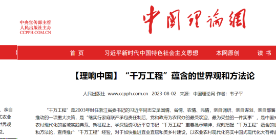 求是网链接:“千万工程”蕴含的世界观和方法论//www.qstheory.cn/2023-08/09/c_1129795542.htm