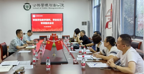 在公法楼402会议室召开教学资料、毕业论文检查情况反馈及专项整改工作布置会,院长、院评建办主任徐济益,院评建办副主任、各系主任、副主任、教学秘书参加会议。院评建办副主任、副院长王务均主持会议。