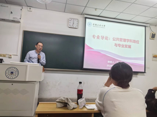 的办学历史、学科地位和专业建设等高质量发展成果,工科背景、科学素养、面向地方、能上能下的公共管理学科特色以及有理想、宽基础、重实践、求创新的公共管理人才培养目标,希望同学们通过四年的专业学习,将自己塑造成通专结合、德才兼备、知行合一的专门型、高层次、应用型公共管理人才。最后通过部分优秀毕业生的先进事迹和典型案例,向新同学们介绍了公共管理专业毕业生的就业方向和发展前景,呼吁同学们用好大学时光、学好专业知识,将来为国家治理体系和治理能力现代化建设贡献力量。