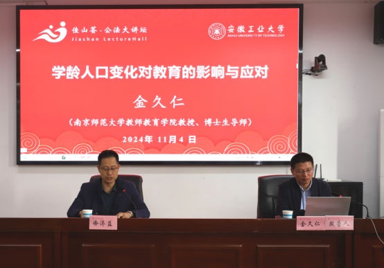 “佳山荟・公法大讲坛”活动,为师生们带来一场名为《学龄人口变化对教育的影响与应对》的学术报告。院长徐济益教授主持报告会,副院长杨哲、王务均,雷金火、邵宁、韦子平等老师参加报告会,全体研究生、创新班本科生、公共事业管理专业2023级本科生共同聆听报告。