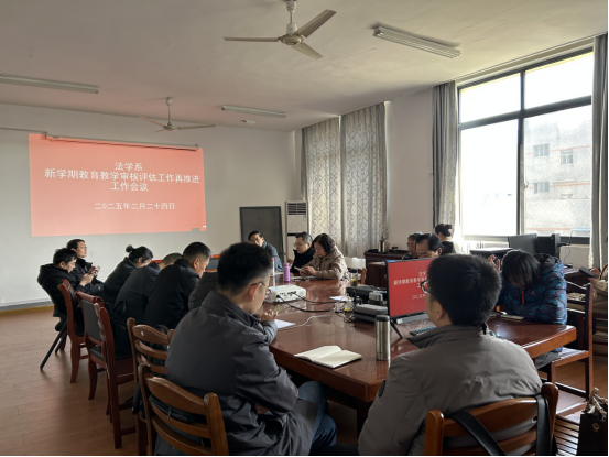 关于加强教风建设、提升教学质量的要求,法学系全体教师于2025年2月24日在公法楼401办公室开展了以“加强教风建设,提高课堂教学质量”“新学期教育教学审核评估工作再推进工作会议”为主题的系列专题活动。