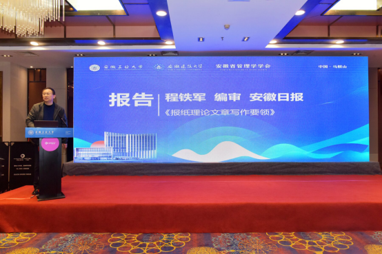 教授李鹏作了题为《数字政府的技术制度双向调试治理》的报告;湘潭大学教授、湖南省行政管理学会副会长梁丽芝、作了题为《数字乡村治理中的基层干部“技术增负”:样态、生成与规制》的报告;安徽日报理论部副主任、编审程铁军作了题为《报纸理论文章写作要领》的报告。