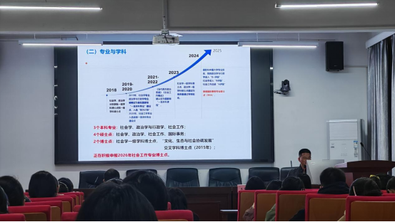 的发展历程和学科特色,重点解读了政治学、社会学与社会工作等硕士专业的人才培养优势和跨学科人才培养改革路径。王中华指出,人工智能发展及其对大学生学习产生的深远影响,如何把握智能机遇、避免机器依赖成为当今大学生必须面临的重要学习问题。政治学、公共管理、社会学等专业学生也要积极开展跨学科学习,探索新的学习方式,掌握人工智能技术,提升学习效率,并助力职业发展。王老师说,未来学习将更加注重学习者的创新思维、批判性思考以及跨学科能力素养,同学们要始终保持学习主体性和主动性,持续提升自己的创造力、情感和理解力。应对人工智能发展和高等教育普及化的双重变革,同学们需要深化专业情感、坚定学习目标,通过读书升学和提升人力资本等途径,应对未来世界的不确定性。