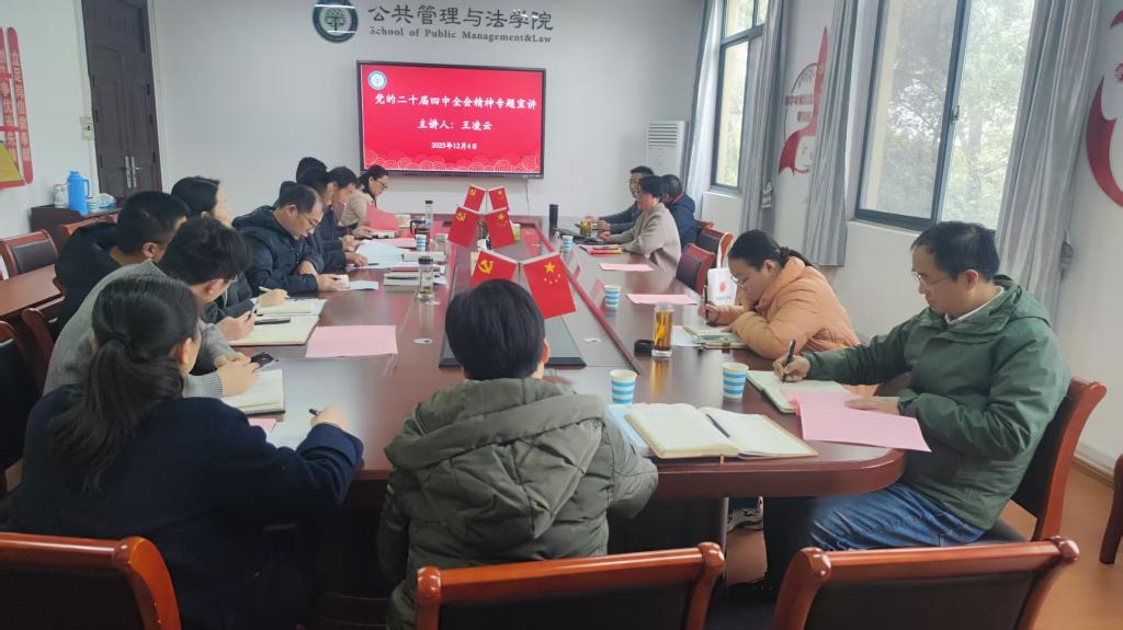 同志们围绕“深入学习党的二十届四中全会精神,积极履职尽责担当作为”主题开展专题研讨交流,胡正友、周浩然、王务均先后作了重点交流发言,并随机抽取了教工党支部书记代表吴丽丽和学生党支部书记代表邢维迢作交流发言。
