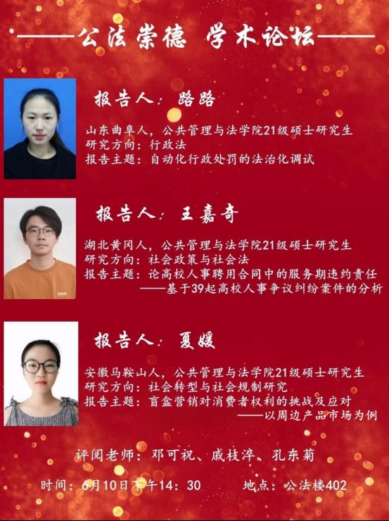公法崇德学术论坛第十四期将于2023年6月10日下午14:30在公法楼402(院会议室)正式开展,欢迎感兴趣的老师和同学参加!