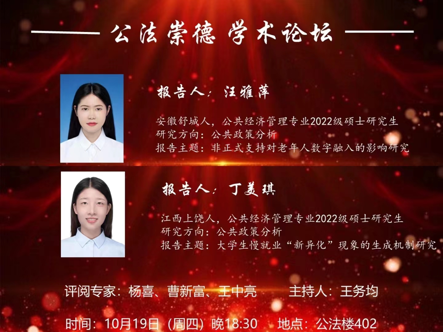 公法崇德学术论坛第十五期将于2023年10月19日(周四)晚上18:30在公法楼402会议室举行,欢迎感兴趣的老师和同学参加!