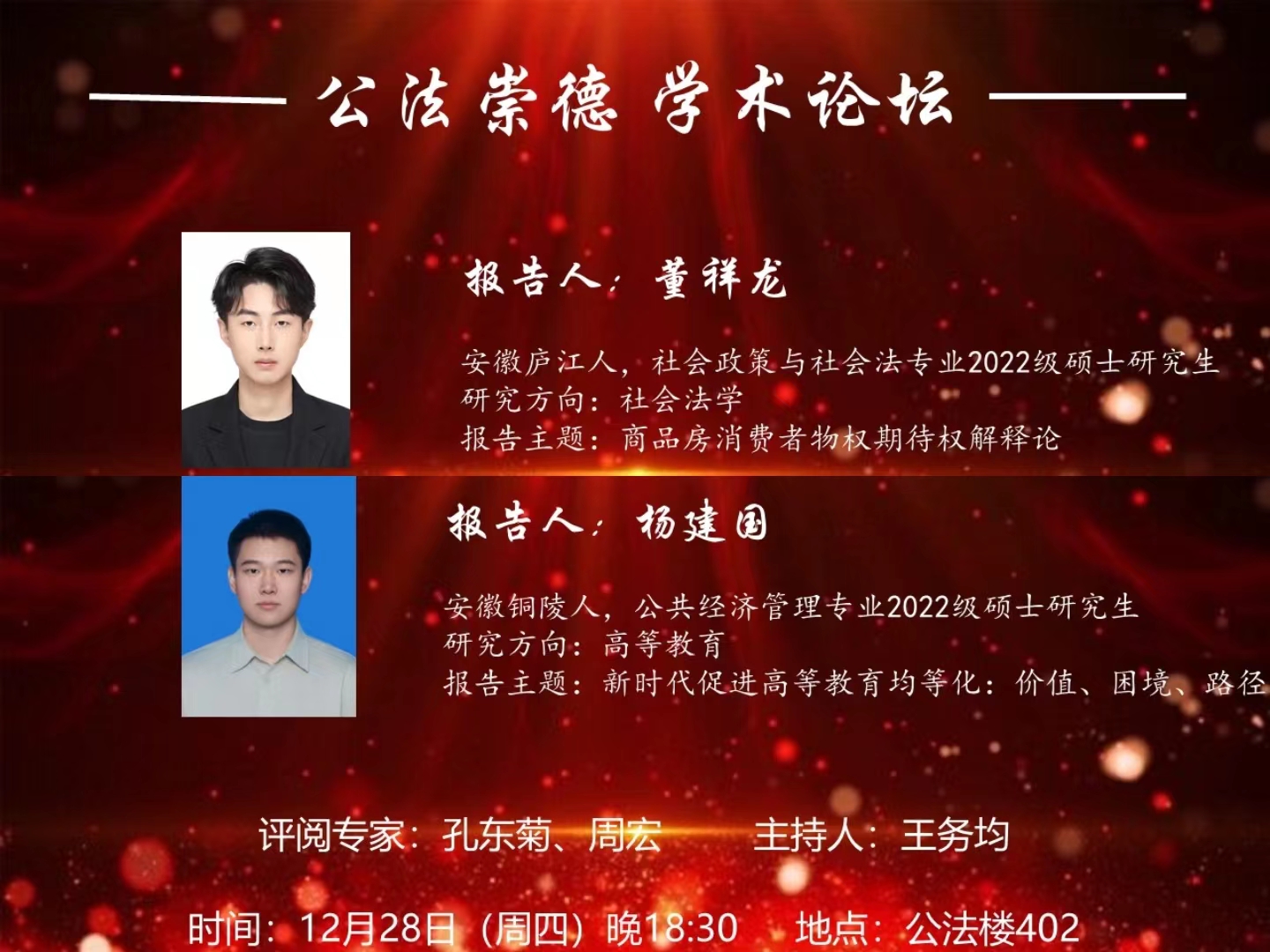 公法崇德学术论坛第十七期将于2023年12月28日(周四)晚上18:30在公法楼402学术交流中心举行,欢迎感兴趣的老师和同学参加!
