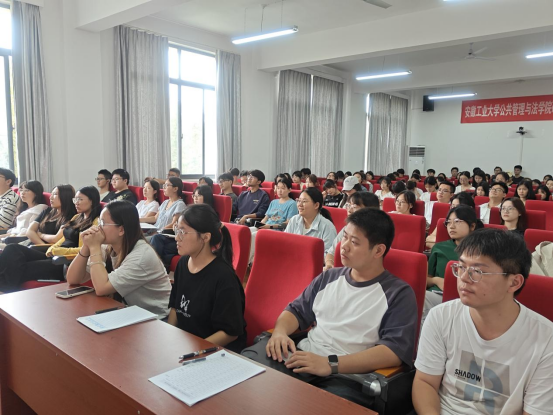 系列学术讲座(第63期)暨研究生入学讲座在公法楼301报告厅隆重举办。安徽工业大学学报(社会科学版)编辑部文双全应邀作了题为《学术期刊论文选题、写作与投稿》的学术讲座。副院长王务均主持讲座会,全体研究生、第三期创新班本科生及部分教师聆听讲座。